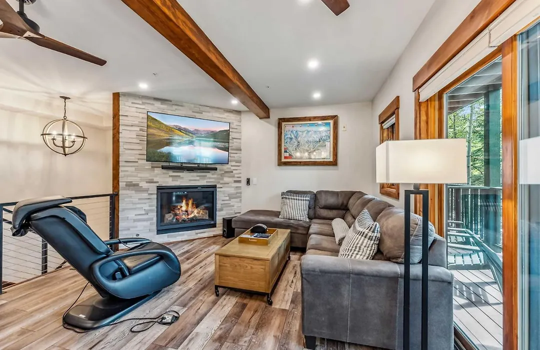 The 2-bedroom Breck Vacation Rental Walk To Gondola & Lifts Breckenridge villa is situated just 5 minutes' walk from the Barney Ford Victorian House, featuring such comforts as Wi-Fi and a car park. Guests can enjoy cycling at this property, located a short way from the Hoosier Pass.